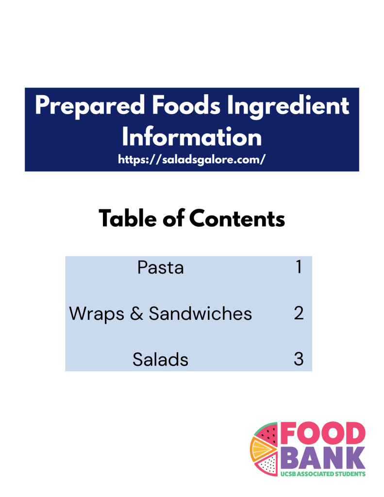Our community vending machines contain a variety of prepared food items; pastas, wraps, salads, sandwiches, and more! For more information about the ingredients in these products, see below.